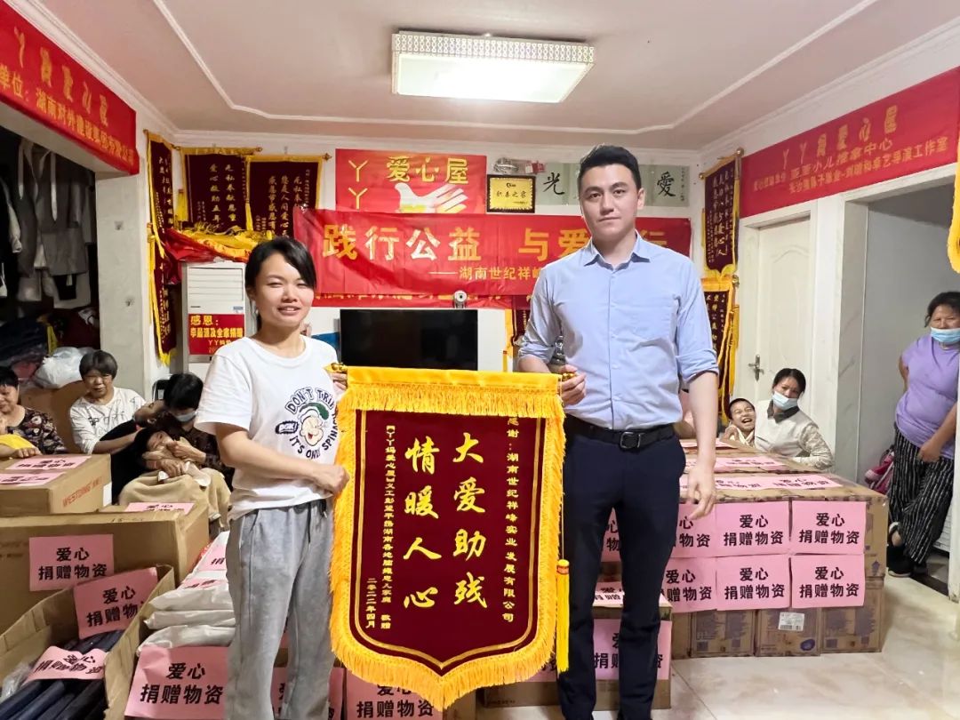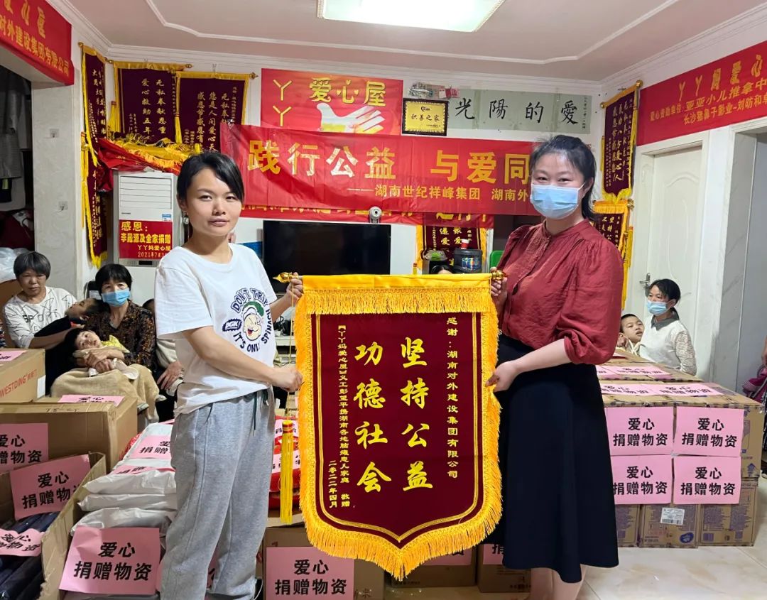 YY媽愛心屋代表對湖南外建的捐贈表示感謝,并表示這些愛心物資,不僅在物質(zhì)上對孩子們是一種幫助,在精神上也是一種提升。孩子們能感受到來自社會的關(guān)愛,這將鼓勵他們更好地參加康復訓練,不斷進步?!奥焓埂迸c湖南外建結(jié)緣兩年以來,每當這里的孩子急需物資和資金時,湖南外建都會第一時間送過來,感激這么具有愛心和社會責任感的企業(yè),并在現(xiàn)場贈送了錦旗。