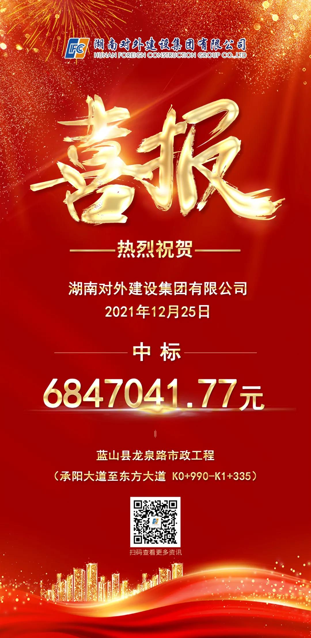 2021年12月25日,我司收到湖南藍(lán)山經(jīng)濟(jì)開發(fā)區(qū)管理委員會(huì)發(fā)來(lái)的中標(biāo)通知書,中標(biāo)藍(lán)山縣龍泉路市政工程項(xiàng)目。據(jù)悉,該項(xiàng)目位于湖南省永州市,主要工程內(nèi)容包括道路工程、交通工程、管線工程、照明工程等。