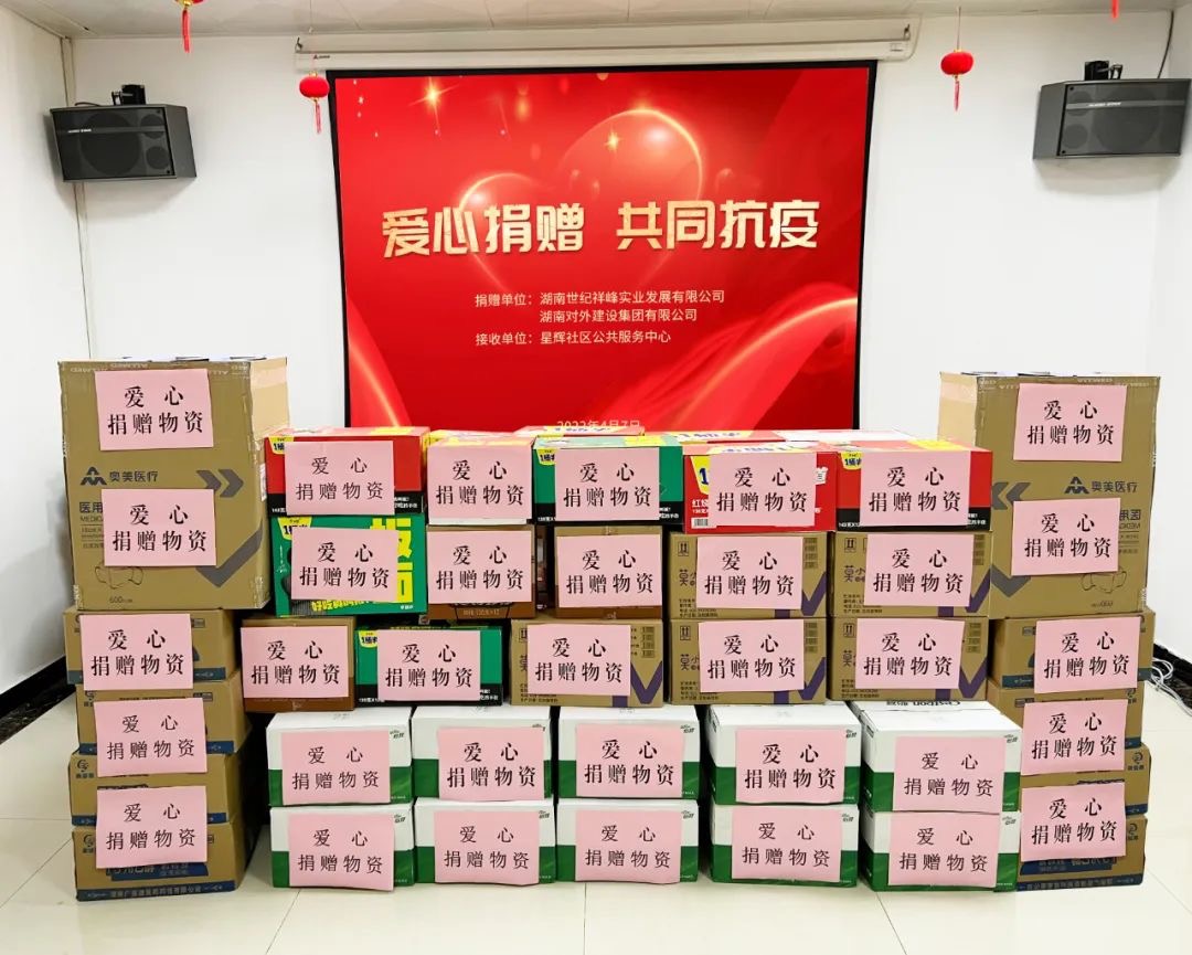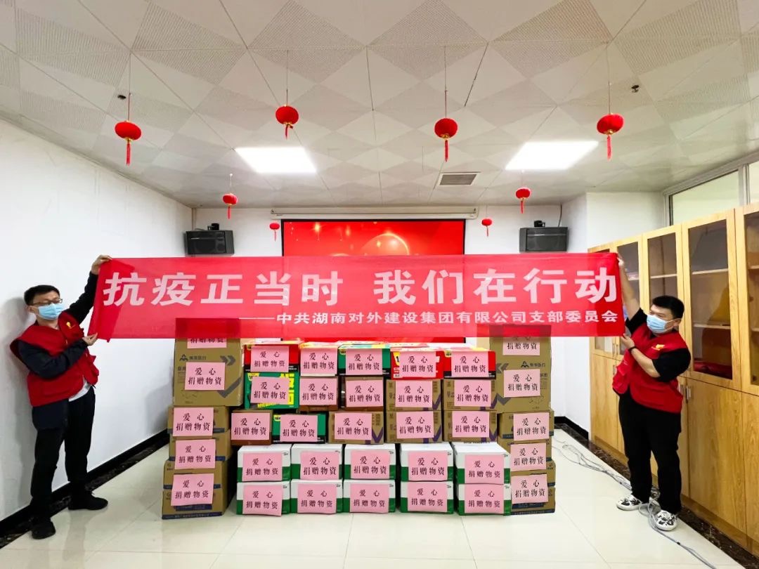 一箱箱的物資,彰顯著湖南外建的企業(yè)擔當和責任