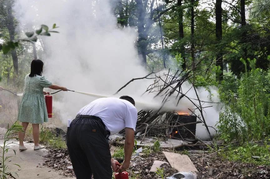 安全生產(chǎn)理論培訓(xùn)結(jié)束后,余敏老師還帶領(lǐng)培訓(xùn)人員進(jìn)行了消防演練并講解了使用滅火器的動作要領(lǐng)及注意事項(xiàng),并做了示范。隨后參與演練的人員依次上場體驗(yàn)現(xiàn)場滅火的過程,面對熊熊燃燒的火堆,大家表現(xiàn)的十分沉著,按照李老師講解的滅火步驟和方法,將燃起的大火迅速撲滅。