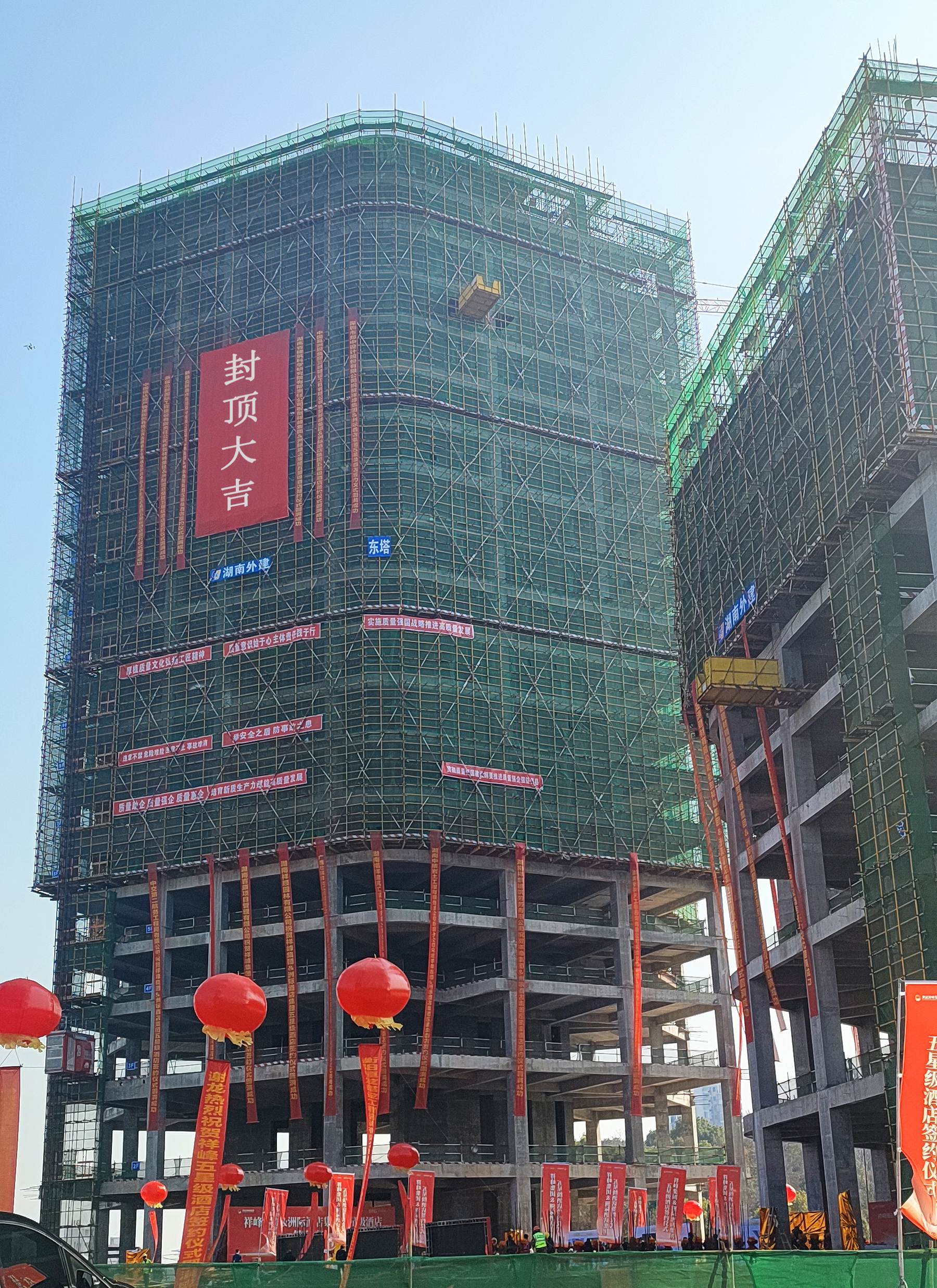 1月10日,由湖南世紀(jì)祥峰實(shí)業(yè)發(fā)展(集團(tuán)有限公司)投資、湖南對外建設(shè)集團(tuán)有限公司承建的衡陽祥峰標(biāo)準(zhǔn)五星級酒店封頂儀式及與洲際酒店集團(tuán)簽約儀式在衡陽石鼓區(qū)隆重舉行。衡陽市政府副市長謝宏,市政協(xié)一級巡視員許云生,市政府副秘書長郭建中、謝韜,石鼓區(qū)委書記、區(qū)長謝海蓉,祥峰集團(tuán)、外建集團(tuán)董事長許剛丈見證簽約。祥鴻置業(yè)董事長、外建集團(tuán)總經(jīng)理許少峰,洲際酒店集團(tuán)發(fā)展副總裁張靜興代表雙方進(jìn)行簽約。